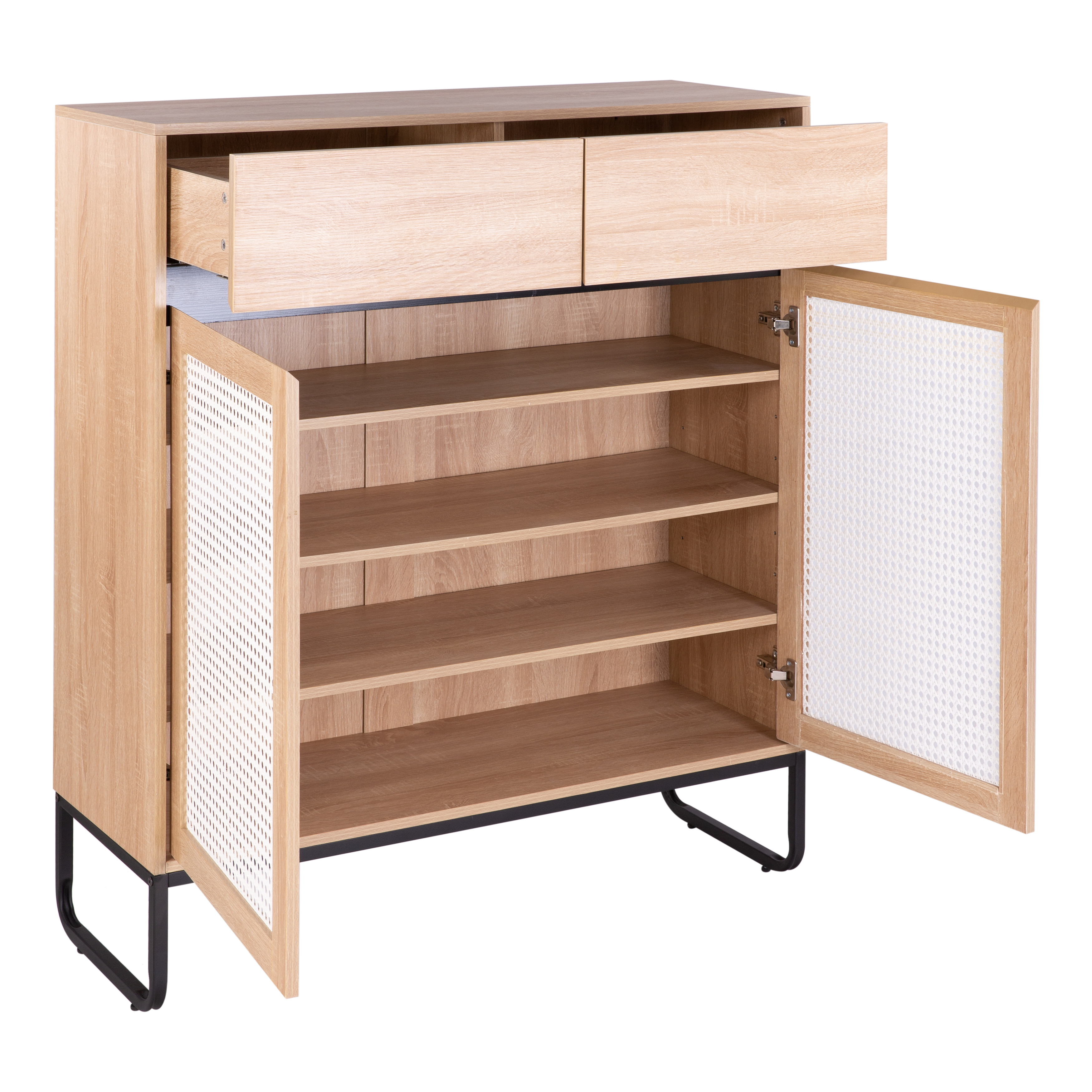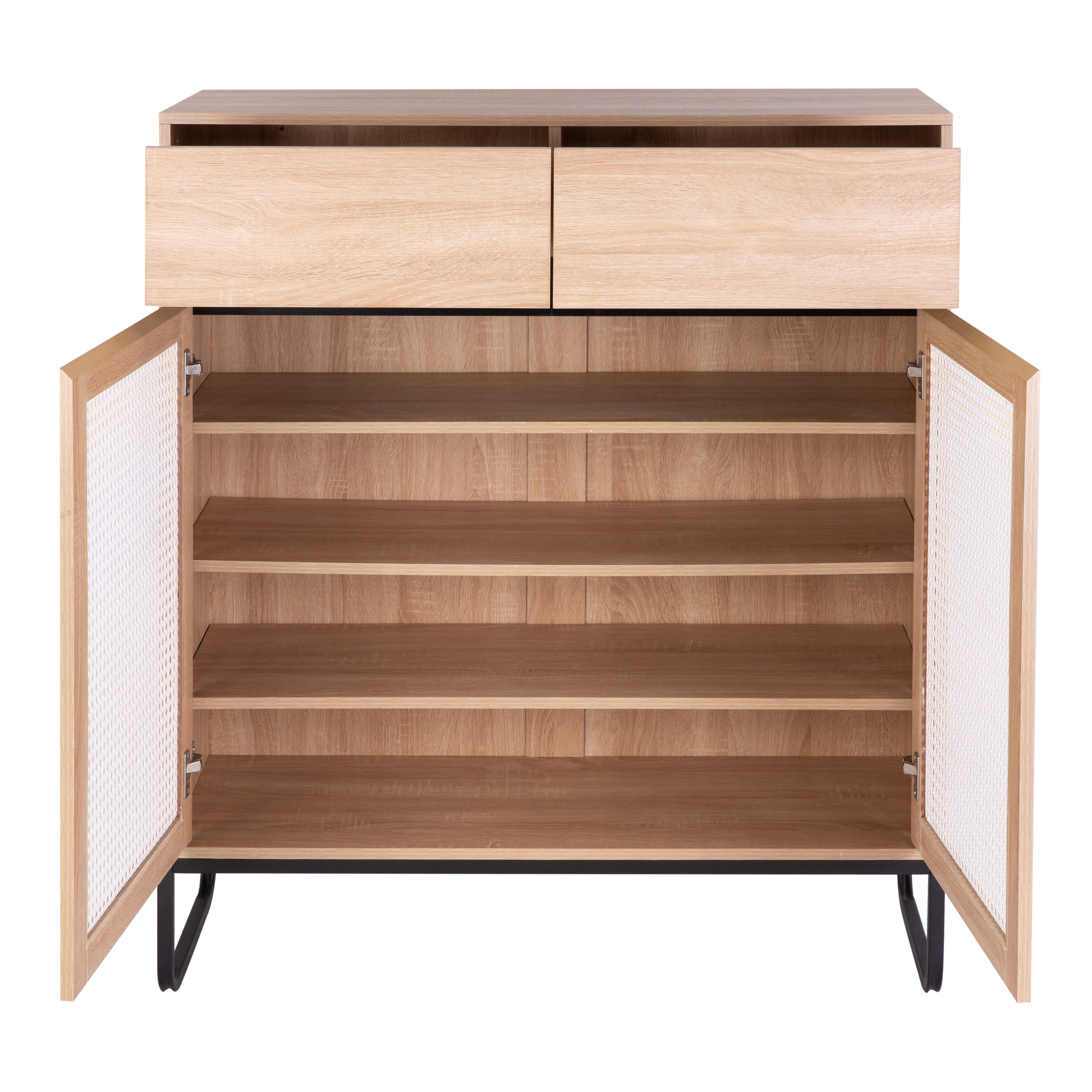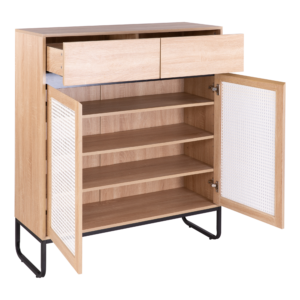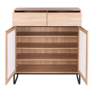 Thiết kế tủ với 3 tầng chính có cánh để đựng giày dép, đáy trống để chứ những loại dép sử dụng thường xuyên